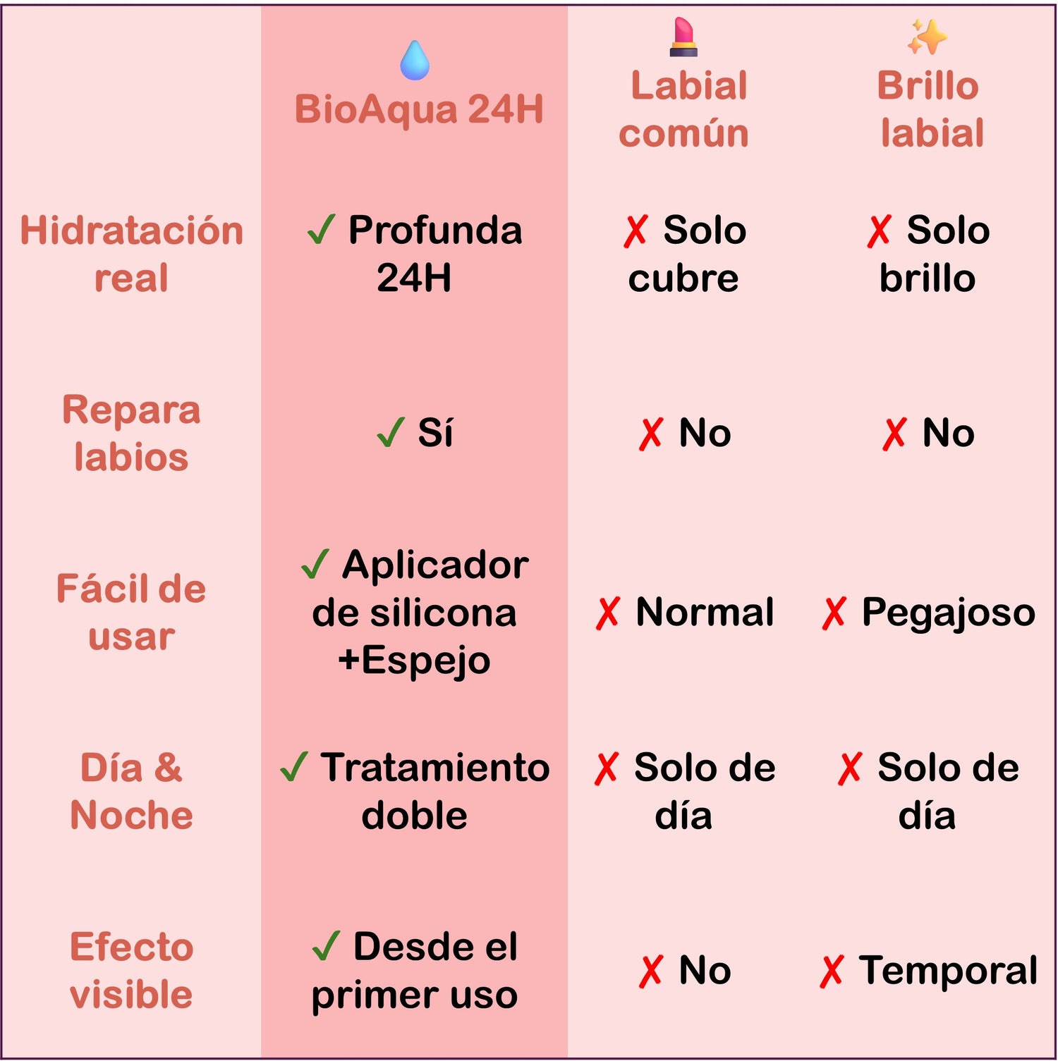 ¡Un cambio total! Mis labios ya no se agrietan. BioAqua los mantiene hidratados todo el día. Me encanta que también funcione como tratamiento nocturno.